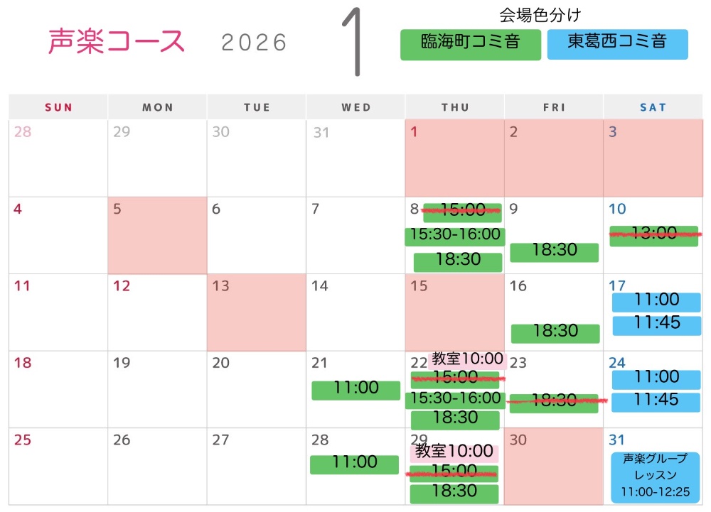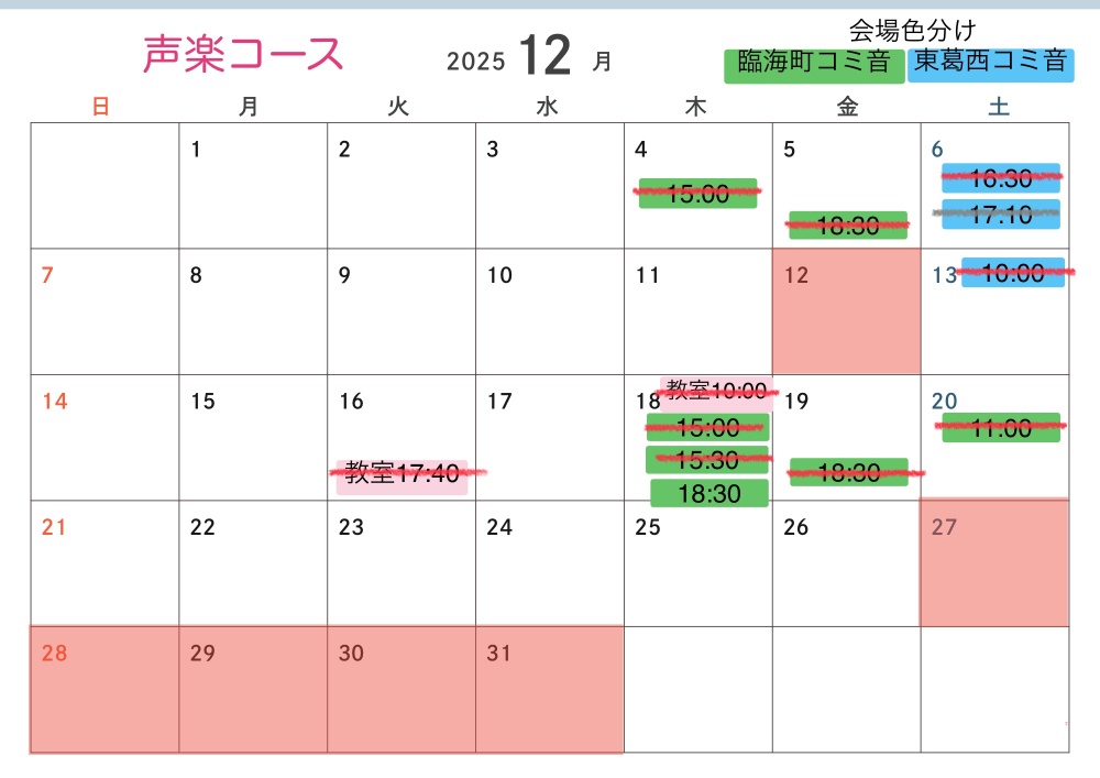 ⭐️灰色ラインの日時は、施設が空いていればレッスン可能です♪
